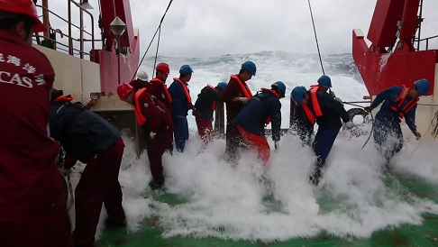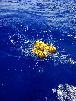在船上的54天里,我們布放了14套潛標(biāo),回收了11套潛標(biāo),累計(jì)布放803件,回收了294件,其中也包括我們所生產(chǎn)的ADCP。雖然我主要負(fù)責(zé)我們的設(shè)備,但也負(fù)責(zé)了所有的潛標(biāo)布放,而在布放的過程中,最常見的天氣就是高溫炎熱,因?yàn)榇耙恢痹诔嗟栏浇鳂I(yè),所以船甲板溫度在40度以上,我們常常頂著毒辣的太陽在甲板上布放,也讓布放增加了難度,而還有個(gè)自然因素就是以迅雷不及掩耳之勢襲來的暴雨,我們經(jīng)常在暴雨中連續(xù)作業(yè),全身都濕透了,也只能頂著暴雨堅(jiān)守戰(zhàn)地。而值得一提的是當(dāng)大風(fēng)以20m/s速度襲來時(shí),浪花直接拍到了6層駕駛室的玻璃上,仿佛將要把我們吞沒,此時(shí)看著浩瀚無邊的海洋,一道道波浪不斷涌來,撞擊在船體上,發(fā)出天崩地裂的吼聲,噴濺著雪白的泡沫。是那樣的壯觀。當(dāng)一切都回歸平靜的時(shí)候,又是那樣的云淡風(fēng)輕。